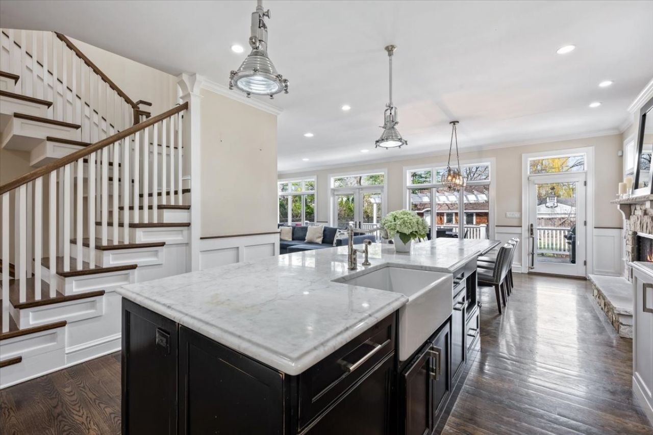 In the McKenzie School District, this Nantucket-inspired home offers 5 bedrooms, 4.5 baths, and a layout that truly works-balancing architectural detail with everyday livability. Built in 2010, the home is rich in character, from the welcoming front porch and Craftsman-style entry to the barrel-vaulted beadboard foyer, tall ceilings, paneled millwork, coffered ceilings, and custom built-ins. The main level is designed for how people actually live, with a seamless connection between the kitchen, family room, and outdoor space. The kitchen features a paneled Sub-Zero refrigerator, Viking range, large island, and sunny eating area with fireplace. A private office, formal living and dining rooms, and a bright mudroom with built-ins and separate yard entrance complete the level. Upstairs, the primary suite offers a beamed vaulted ceiling, custom closets, and a timeless marble bath. Three additional bedrooms include one ensuite, while two offer walk-in closets. Second-floor laundry adds everyday convenience. The finished lower level offers tall ceilings and exceptional flexibility, including a rec room with fireplace, a fully equipped wet bar with three beverage refrigerators, Bosch dishwasher, microwave, and built-in cabinetry, plus a fifth bedroom, full bath, office, exercise room, pantry with additional refrigerator, and generous storage. The fully fenced backyard is designed for both entertaining and daily use, with a large deck, slate patio, pergola-covered fire pit, outdoor speakers, landscape lighting, and thoughtfully integrated pathways. Two-car garage plus parking pad for a third car.