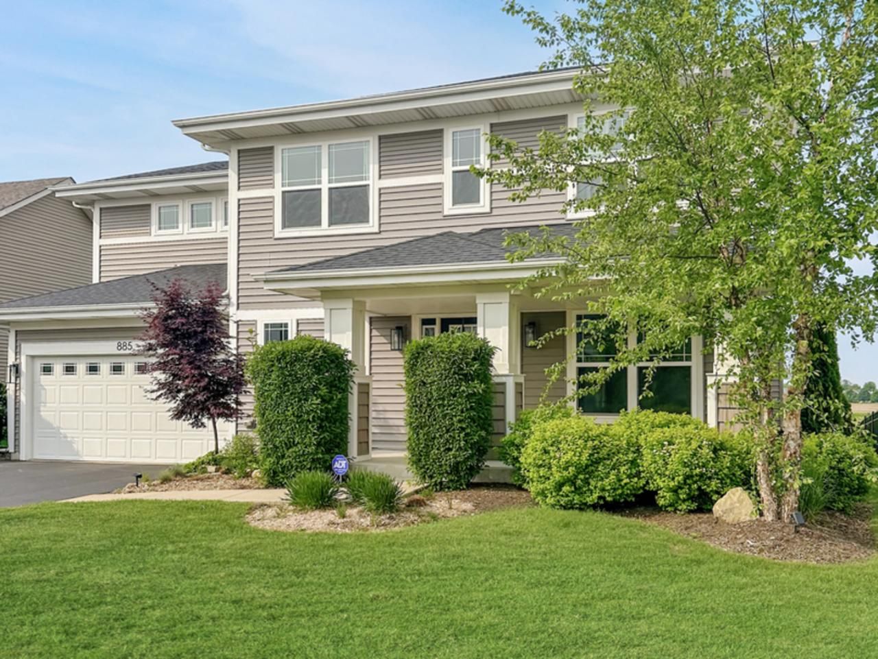 Spectacular, spacious, and bright home nestled in idyllic Elburn. Located in the sought-after Elburn Station community, it offers the perfect blend of tranquility and convenience, with easy access to local parks, walking trails, and recreational facilities, while being just minutes from the Metra station for seamless commuting to Chicago and surrounding areas. This home features a classic, modern two-story design with a charming covered front porch. The entryway exudes modern elegance with a striking black front door and glass-paneled double doors leading into a the inviting den. Wide-plank upgraded engineered hardwood flooring and neutral wall tones create a warm and timeless aesthetic, while the large windows allow for ample natural light throughout. Fabulous kitchen features sleek white cabinets with a striking backsplash, all stainless steel appliances, a spacious island, butler's pantry & walk-in pantry, and a separate dining area that offers picturesque views through the sliding glass doors. The sizeable family room boasts a cozy gas fireplace and a stunning wall of windows, flooding the space with natural light. A stylish powder room, mudroom, and laundry room complete the main level. The primary suite comprises a generous bedroom, WIC, and modern bath w/ double vanity, soaking tub, and separate shower. Three additional bedrooms and a hall bath are located on the second level as well. Impressive outdoor living space! Enjoy breathtaking views of the sprawling landscape and pond from the expansive patio. Solar panels are paid in full ~ NO electric bill here (can check productivity of the panels via App)! The home also includes a reverse osmosis system that will extend the longevity of all appliances. Two-car garage features a Tesla charger that is compatible with most newer electric vehicles. This exceptional home is sure to impress the most discerning buyer!