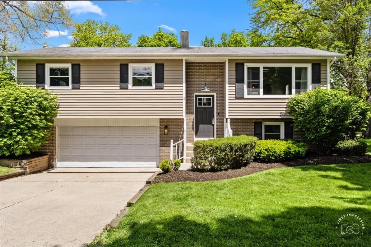 Situated in the Geneva Manor Subdivision, this split level home has been recently remodeled. It's a perfect, and move-in ready, located near downtown Geneva. As you enter the house, you'll be welcomed by beautiful shiplap walls in the foyer and stairway. The lovely living room has a huge window offering natural lighting. The stunning kitchen is fresh, and modern, and boasts Quartz countertops, 42 white soft-close cabinets, a farmhouse sink, subway tile, and stainless-steel appliances and ample eat-in space. The main level also includes a full newer refreshed bath, with attractive tile and glass-block window light. The main floor features updated lighting, manufactured hardwood flooring throughout, except for the primary bedroom and 2nd bedroom. The lower level has a family room/office that could be used as a 4th bedroom, a walk-in closet, and has an additional full bath. The large laundry room comes with built-in shelving and a utility sink. You can relax and enjoy the spacious, new, wrap-around deck that overlooks the mature and professional landscaping with entrances off of the kitchen and living room to the deck.The home is situated on the lot to have two large side yards; room for gardens, play sets, relaxing, and living your best life.
